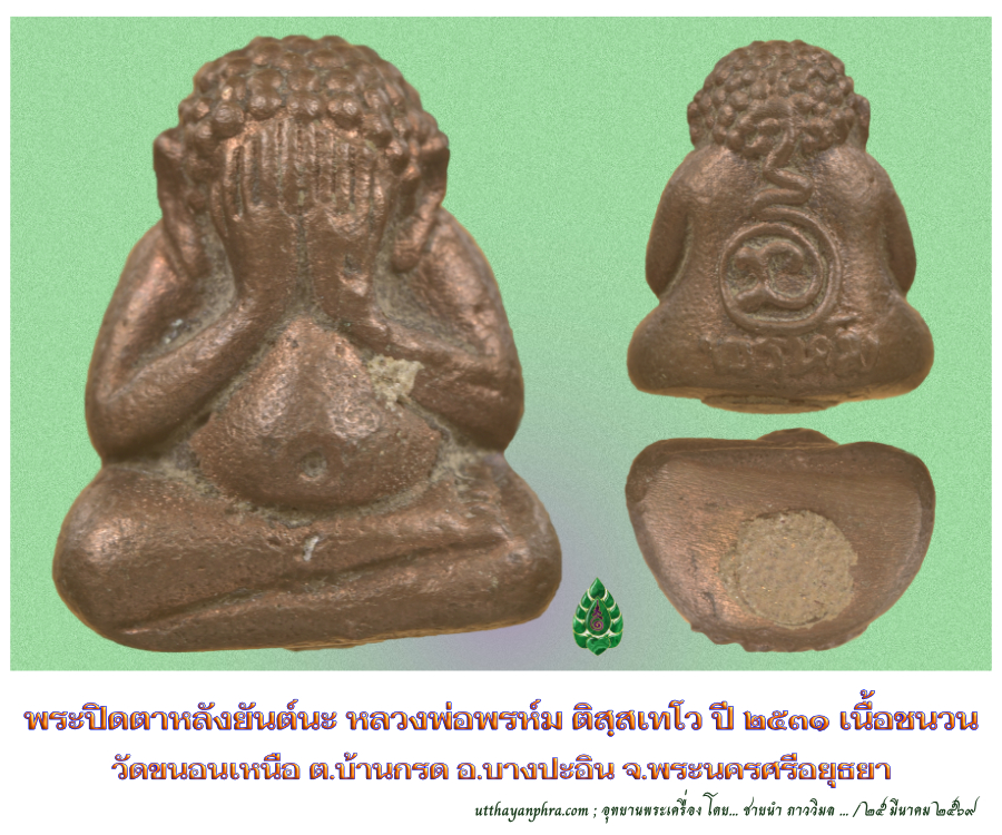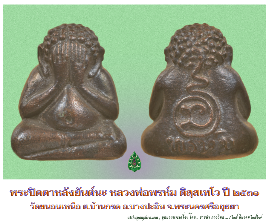 พระปิดตาหลังยันต์นะ หลวงพ่อพรห์ม ติสฺสเทโว วัดขนอนเหนือ
