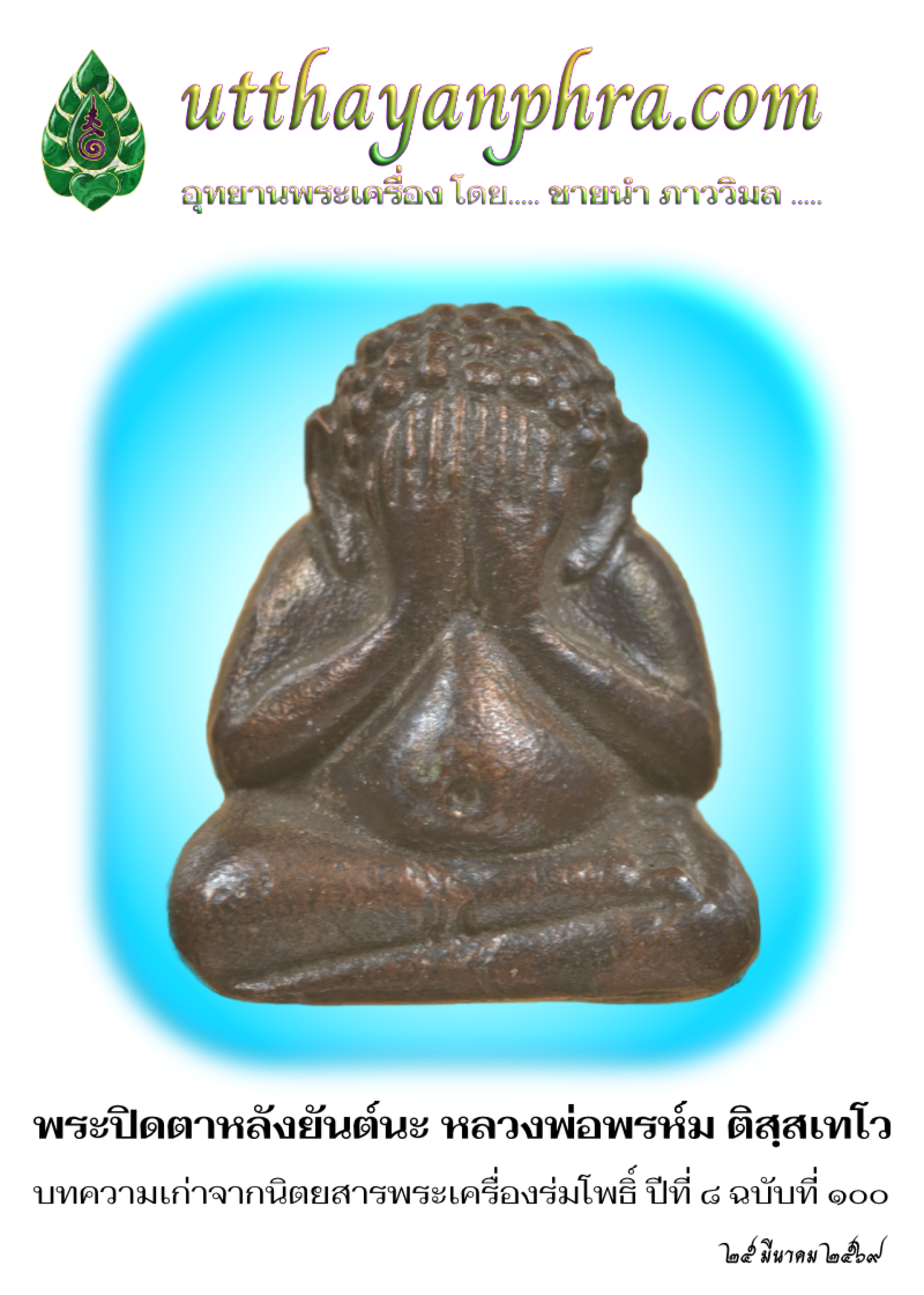 ๑ บทความเก่าจากนิตยสารพระเครื่องร่มโพธิ์ ปีที่ ๘ ฉบับที่ ๕ (๑๐๐) พฤศจิกายน ๒๕๔๑ เรื่อง “พระปิดตาหลังยันต์นะ พระอาจารย์พรห์ม ติสฺสเทโว วัดขนอนเหนือ” โดย... ช.พิมลราช ... หน้า ๖ - ๗.