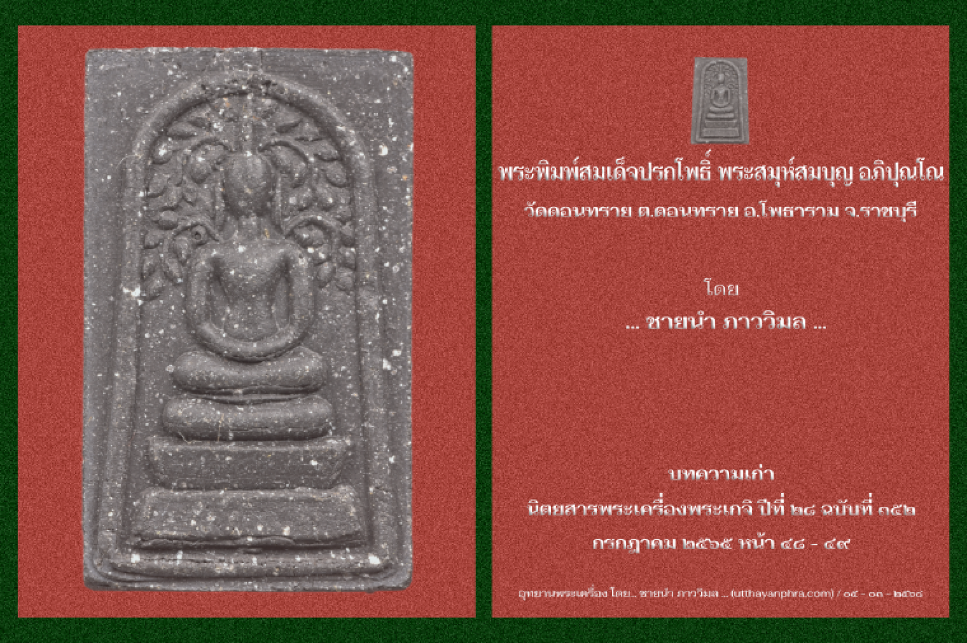 (บทความเก่าจากนิตยสารพระเครื่องพระเกจิ ปีที่ ๒๘ ฉบับที่ ๓๕๒ กรกฎาคม ๒๕๖๕ หน้า ๔๘ - ๔๙)
