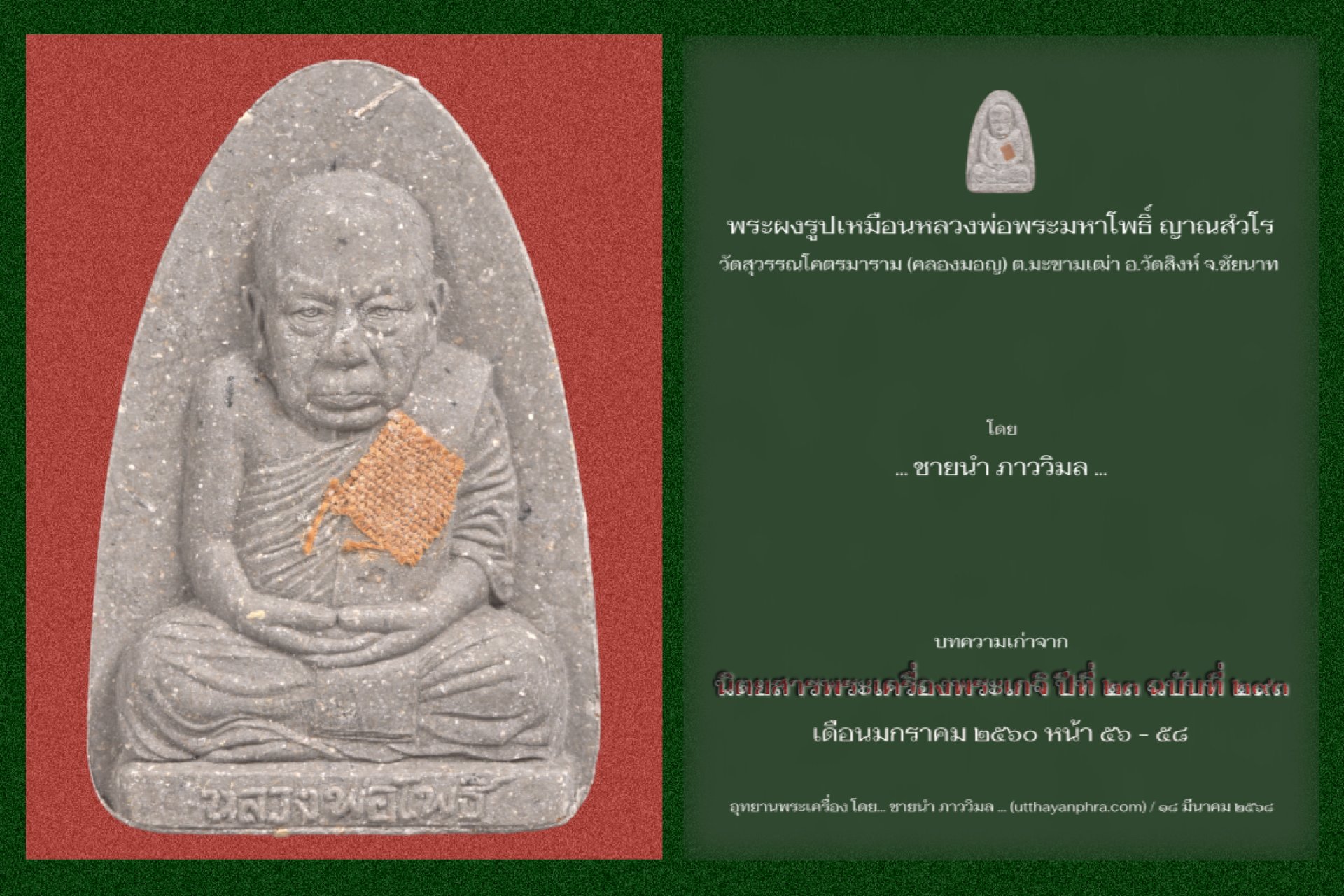 นี่คืออีกมุมหนึ่งของพระเกจิอาจารย์ผู้สืบสายพุทธาคมของหลวงปู่ศุข เกสาโร วัดปากคลองมะขามเฒ่า แม้นักนิยมพระเครื่องและพุทธศาสนิกชนทั่วไปไม่ค่อยรู้จักมักคุ้นกับชื่อเสียงเกียรติคุณของท่านมากนัก แต่ในแวดวงนักนิยมพระเครื่องอาวุโส/พระเกจิอาจารย์ร่วมสมัยในแถบลุ่มน้ำเจ้าพระยาตอนบน ต่างรับรู้และยอมรับว่าหลวงพ่อพระอาจารย์มหาโพธิ์ ญาณสํวโร รูปนี้คือ พระสุปฏิปันโนผู้สืบสายพุทธาคมของหลวงปู่ศุข เกสาโร ประเภทตัวจริงเสียงจริงที่เชี่ยวชาญพระเวทวิทยาคมในสายหลวงปู่ศุข เกสาโร อย่างแท้จริง มาถึงตอนนี้ ท่านผู้ อ่านหลายท่านอาจเกิดความสงสัยและตั้งคำถามว่าเหตุใด หลวงพ่อพระมหาโพธิ์ ญาณสํวโร จึงไม่มีชื่อเสียงเกียรติคุณโด่งดังเหมือนพระเกจิอาจารย์ร่วมสมัยรูปอื่นที่เรารู้จักมักคุ้นกันอย่างนี้ในยุคสมัยนี้ เชื่อว่าลูกศิษย์ลูกหาที่เคยเดินทางขึ้นไปกราบนมัสการท่านเป็นประจำ ย่อมทราบดีว่าหลวงพ่อพระมหาโพธิ์ ญาณสํวโร เป็นพระสุปฏิปันโนที่สมถะ รักสันโดษ ไม่ติดยึดในโลกธรรมสี่ ในสมัยที่เป็นฆราวาส ก็เป็นแบบอย่างที่ดีในกิจการงานด้านการปกครองส่วนท้องถิ่น เมื่ออุปสมบทเป็นพุทธสาวก ท่านลาออกจากตำแหน่งเจ้าอาวาสและครองสมณะเพศอย่างเรียบง่าย ไม่มีพิธีรีตองใด ๆ ไม่มีการจัดฉาก เป็นพระแท้ที่กราบไหว้ได้อย่างสนิทใจ ลาภสักการะ เกียรติยศ ชื่อเสียง ไม่เคยมีอยู่ในความคิดของท่าน นิตยสารพระเครื่องหลายฉบับขออนุญาตนำชีวประวัติของท่านมาเผยแพร่ แต่ก็ได้รับการปฏิเสธทุกครั้ง