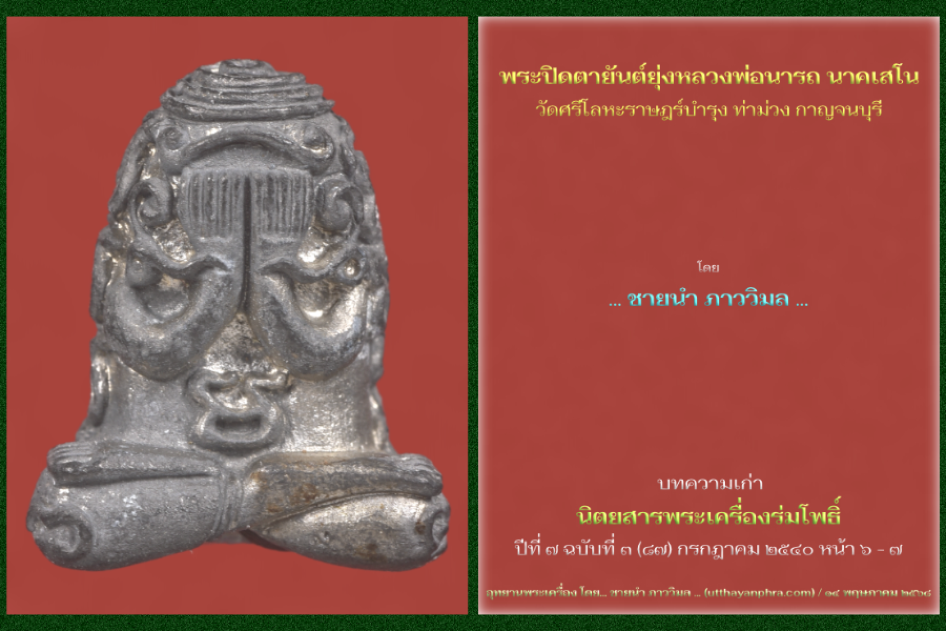 พระปิดตายันต์ยุ่ง หลวงพ่อนารถ นาคเสโน วัดศรีโลหะราษฎร์บำรุง