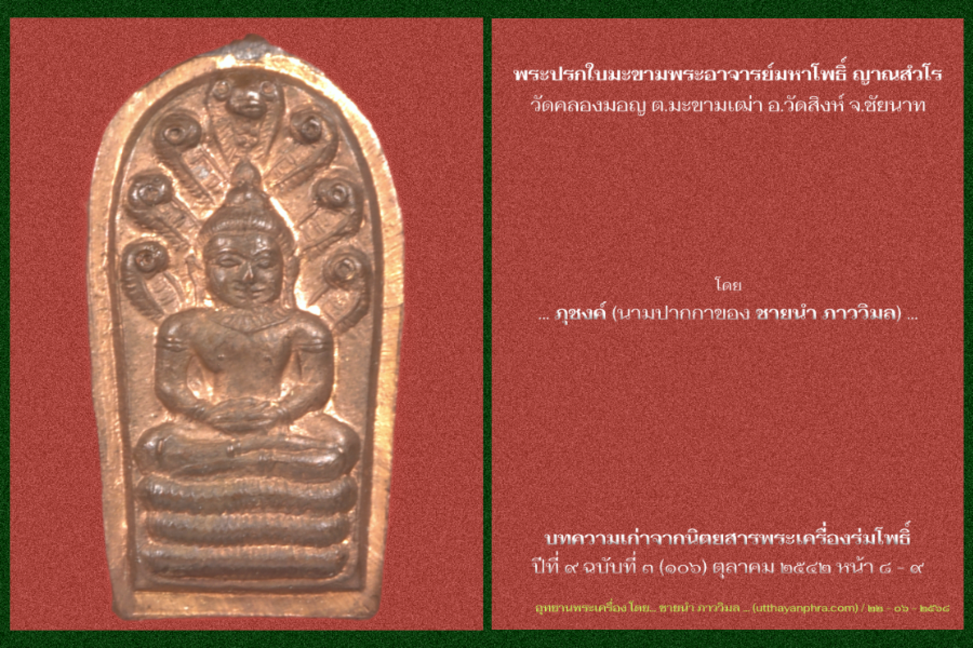 บทความเก่าจากนิตยสารพระเครื่องร่มโพธิ์ ปีที่ ๙ ฉบับที่ ๓ (๑๐๖) ตุลาคม ๒๕๔๒ หน้า ๘ - ๙