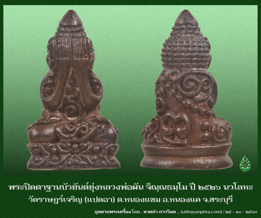 พระปิดตาฐานบัวยันต์ยุ่ง หลวงพ่อผัน จิณฺณธมฺโม วัดราษฎร์เจริญ สระบุรี